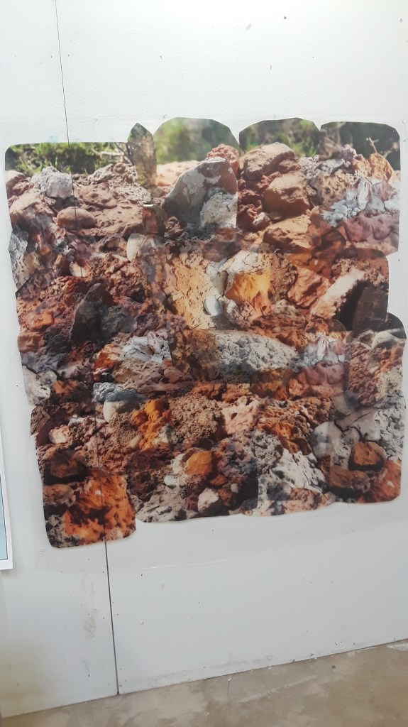 This is made with transparencies stitched together, then taped to a plastic sheet. Still in progress. I want to also install it outdoors and make more of them to make “windows.”