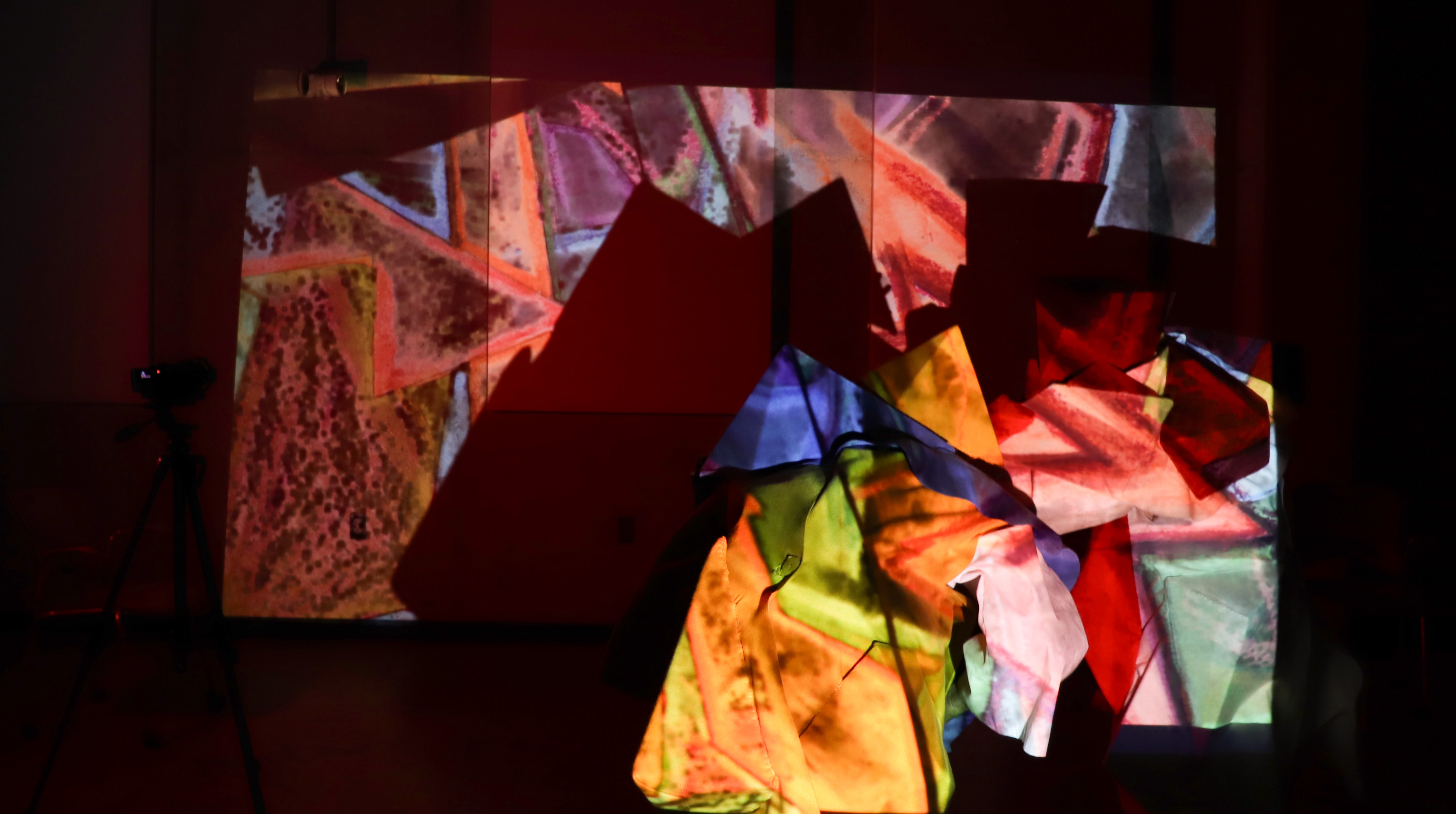 A collaborative exhibition and performance with Sean Lopez and Rori Smith. The exhibition is a multimedia installation with video projection, sound, handmade props, and custom painted backdrops, custom made costumes. On view at Ruffin Gallery, University of Virginia, October 2025. Preview images only.