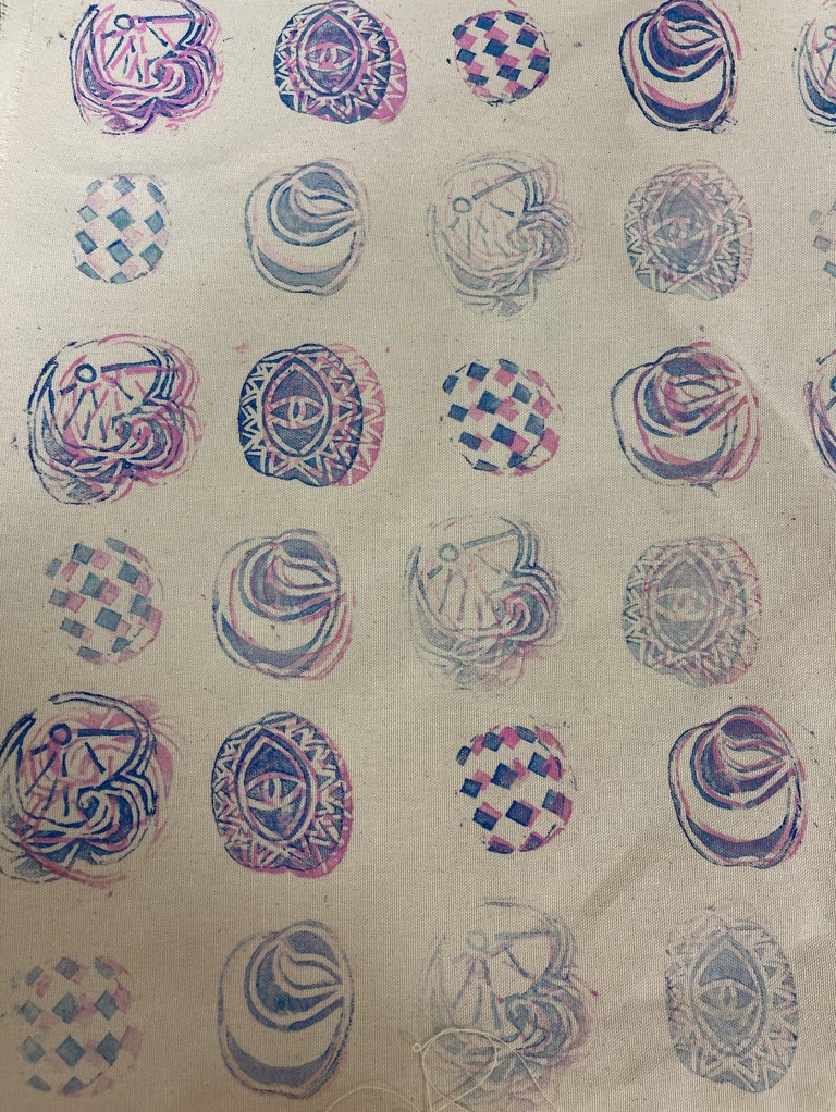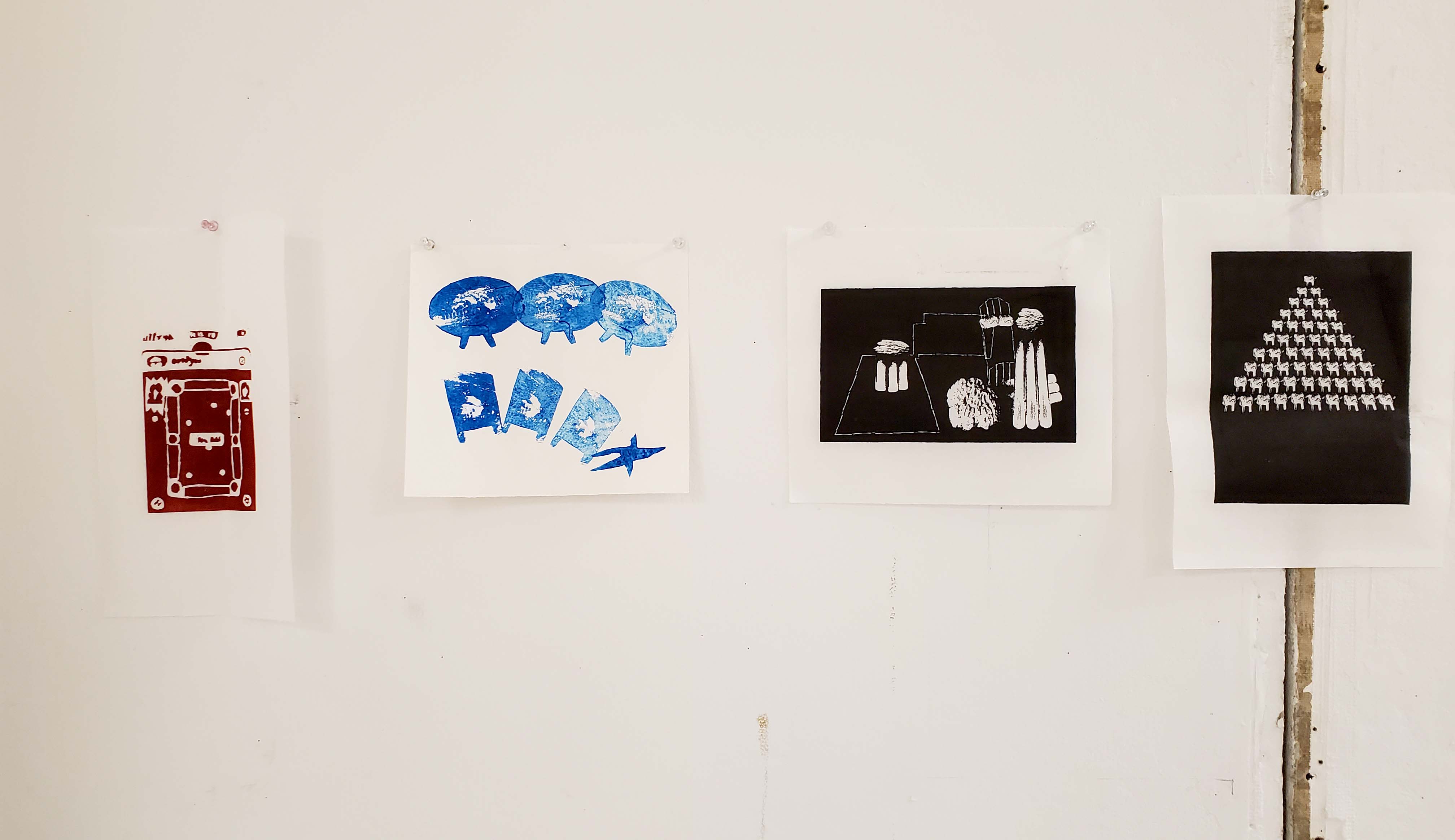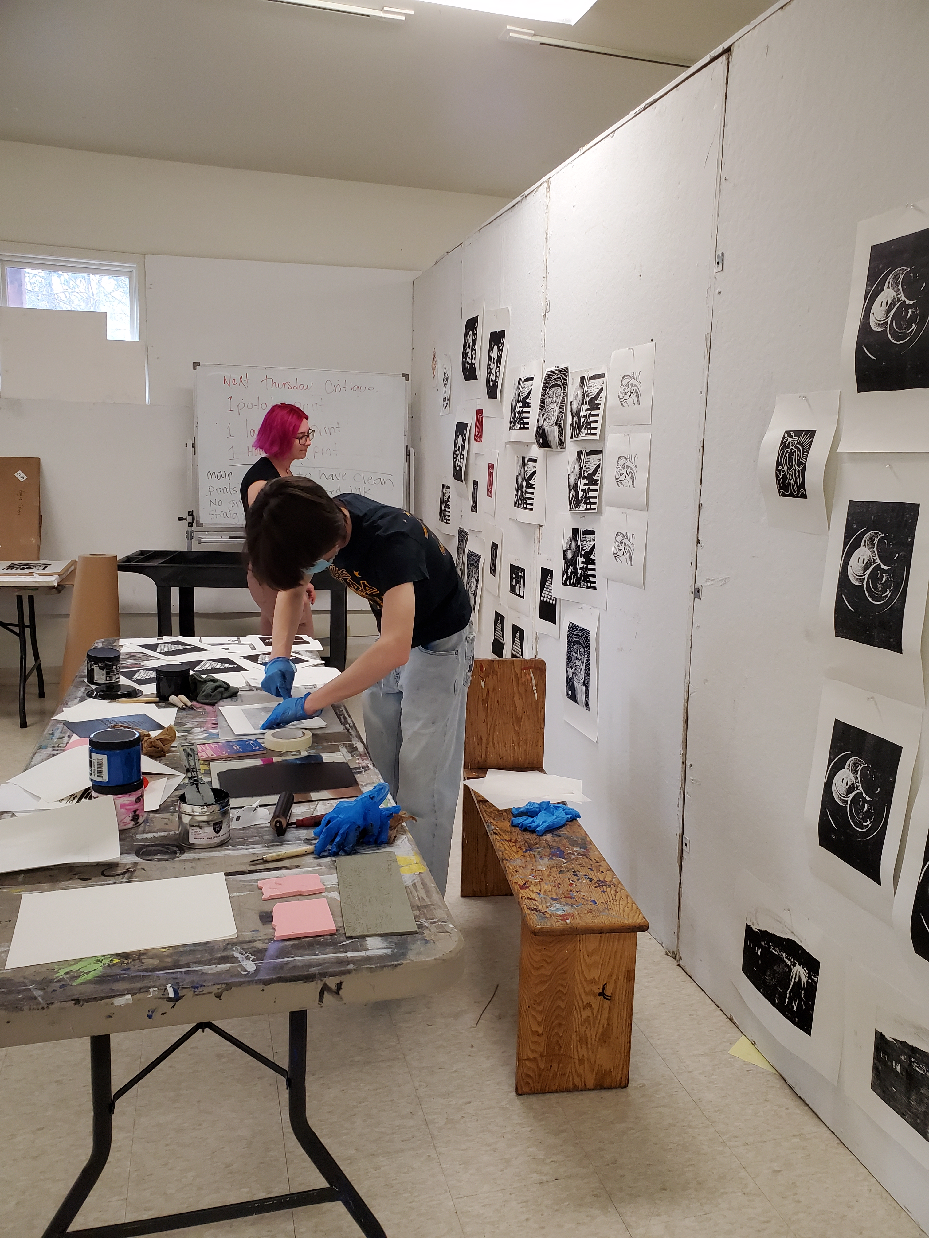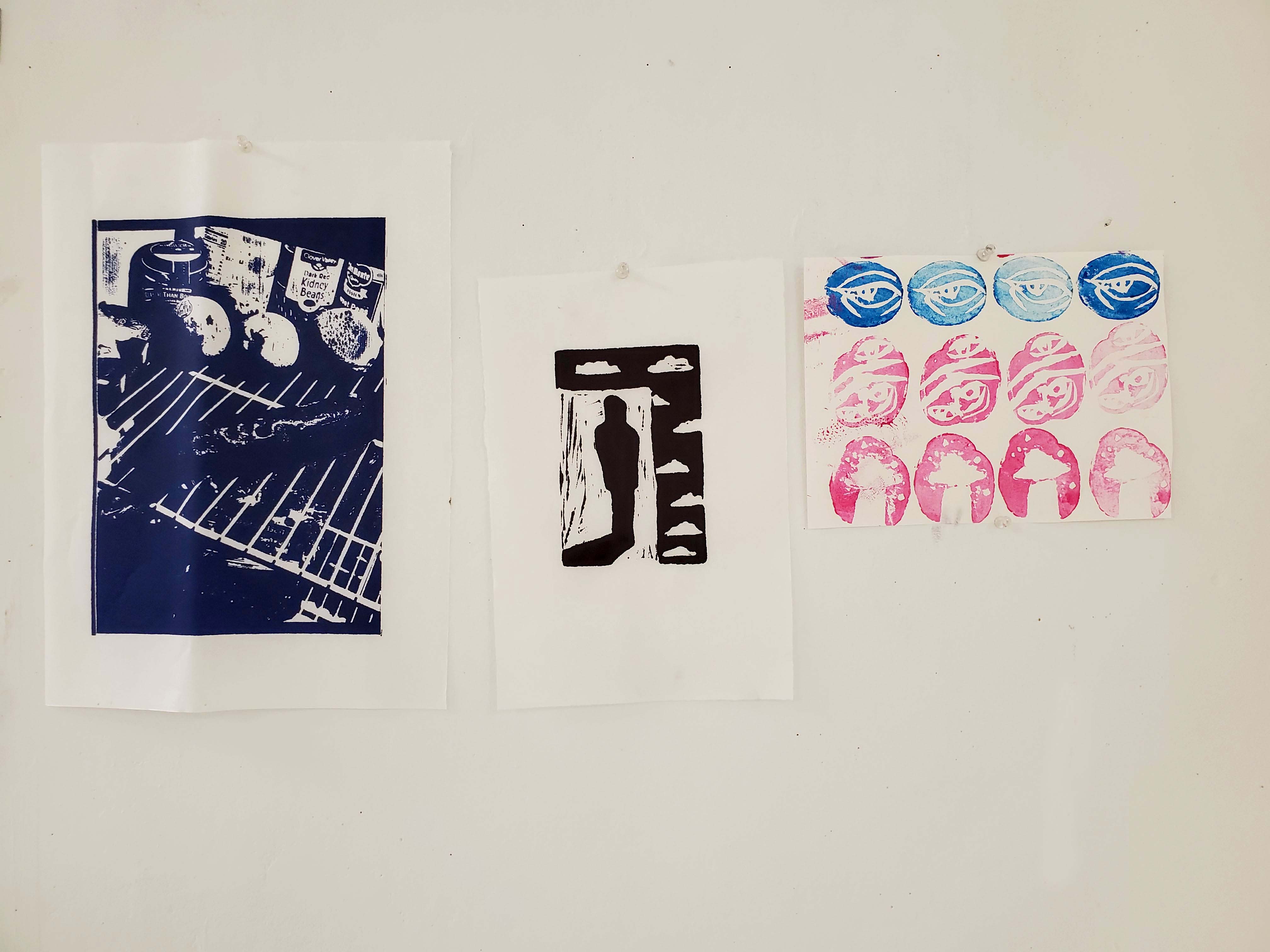 Foundations students explored printmaking processes by first practicing carving with potatoes and creating prints. The second step was to create a print using a digital image which was etched on rubber, and finally, practice hand-carving using a Speedball easy-carve rubber. The students worked through different processes of printmaking and learning through a hands-on experience in a lab setting.