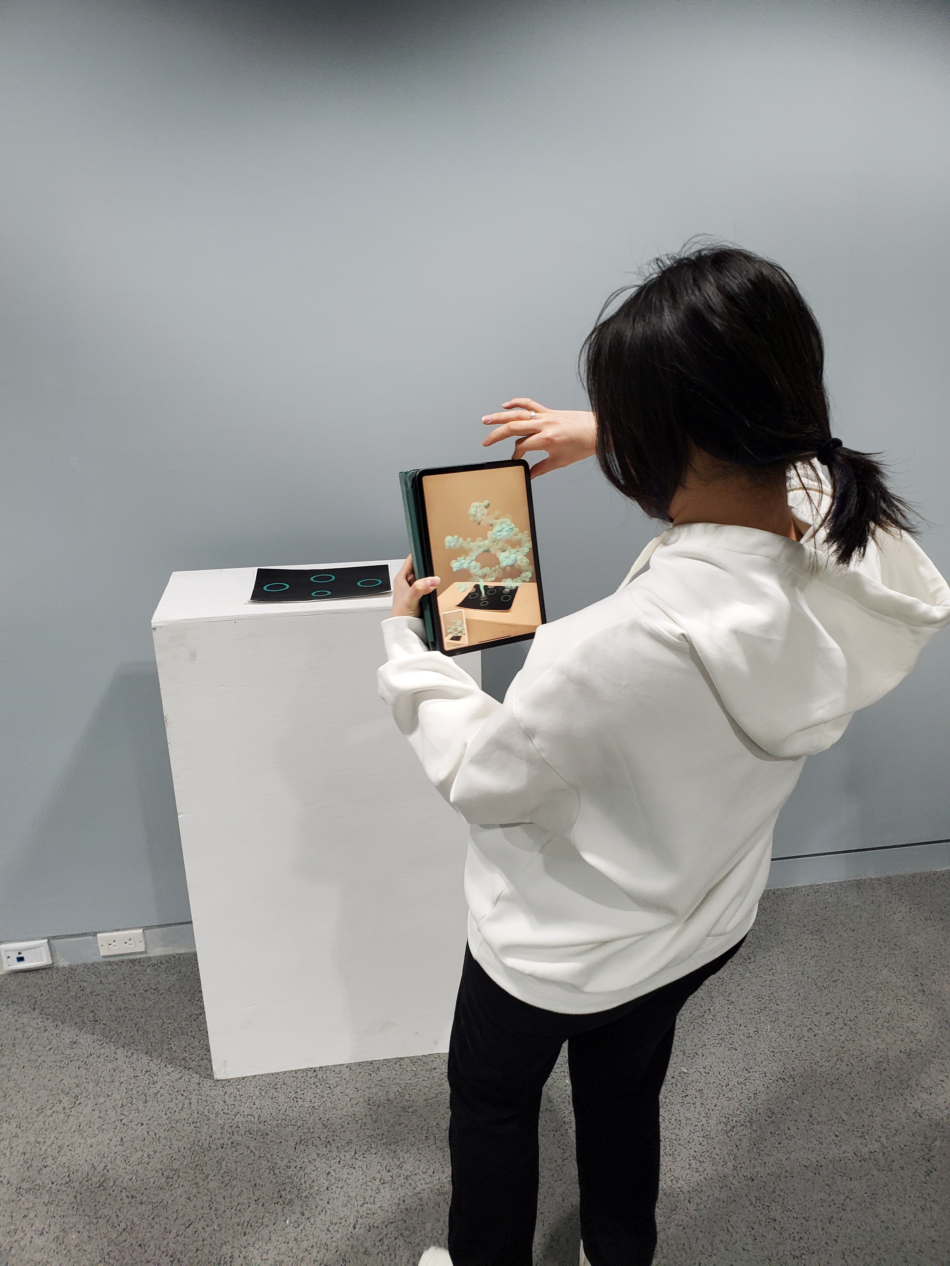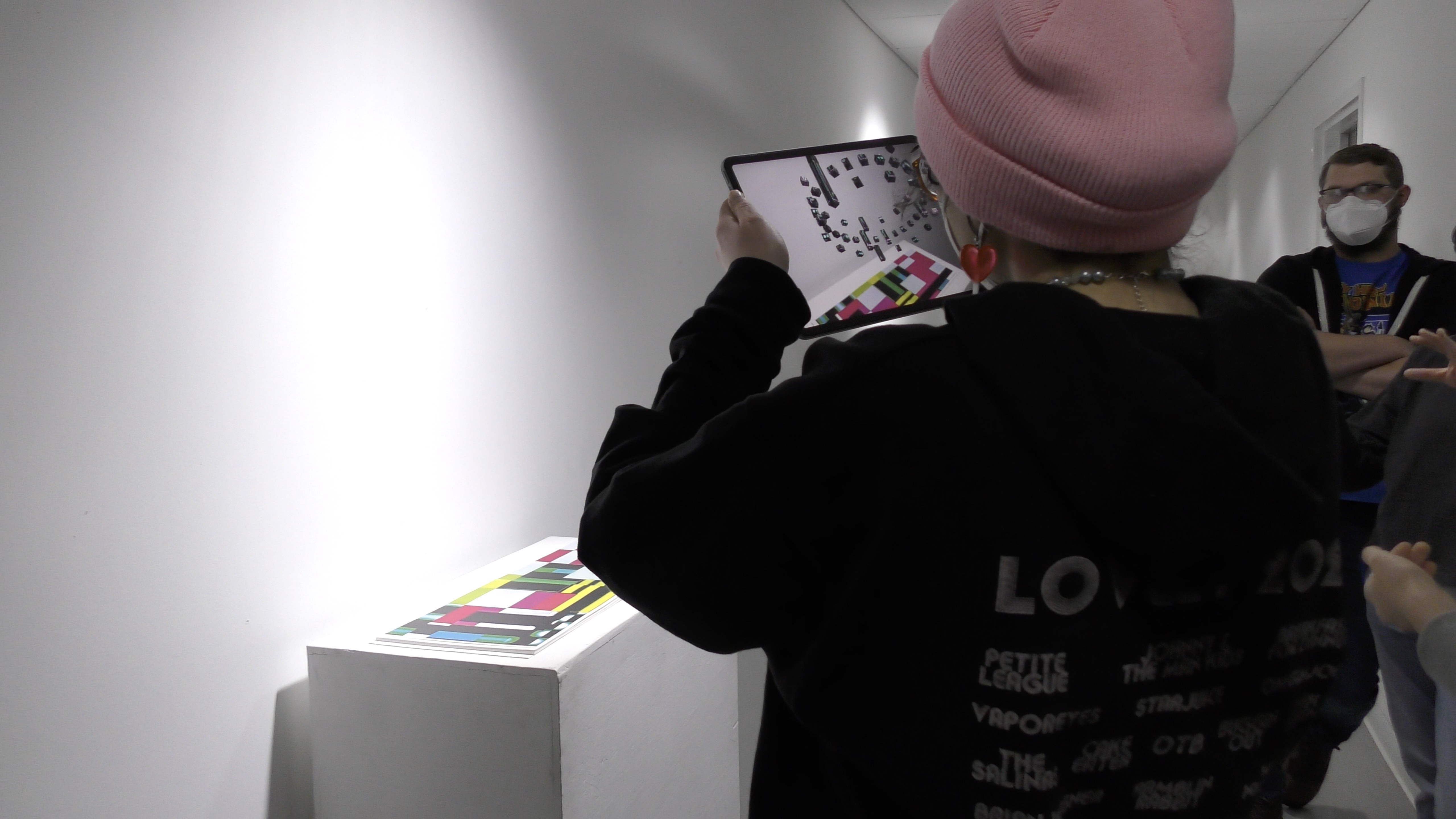 Students created augmented reality applications using Unity and Vuforia Engine. Artworks were created to respond to the gallery space Les Yeux du Monde. Students made two field trips and displayed their final projects there.