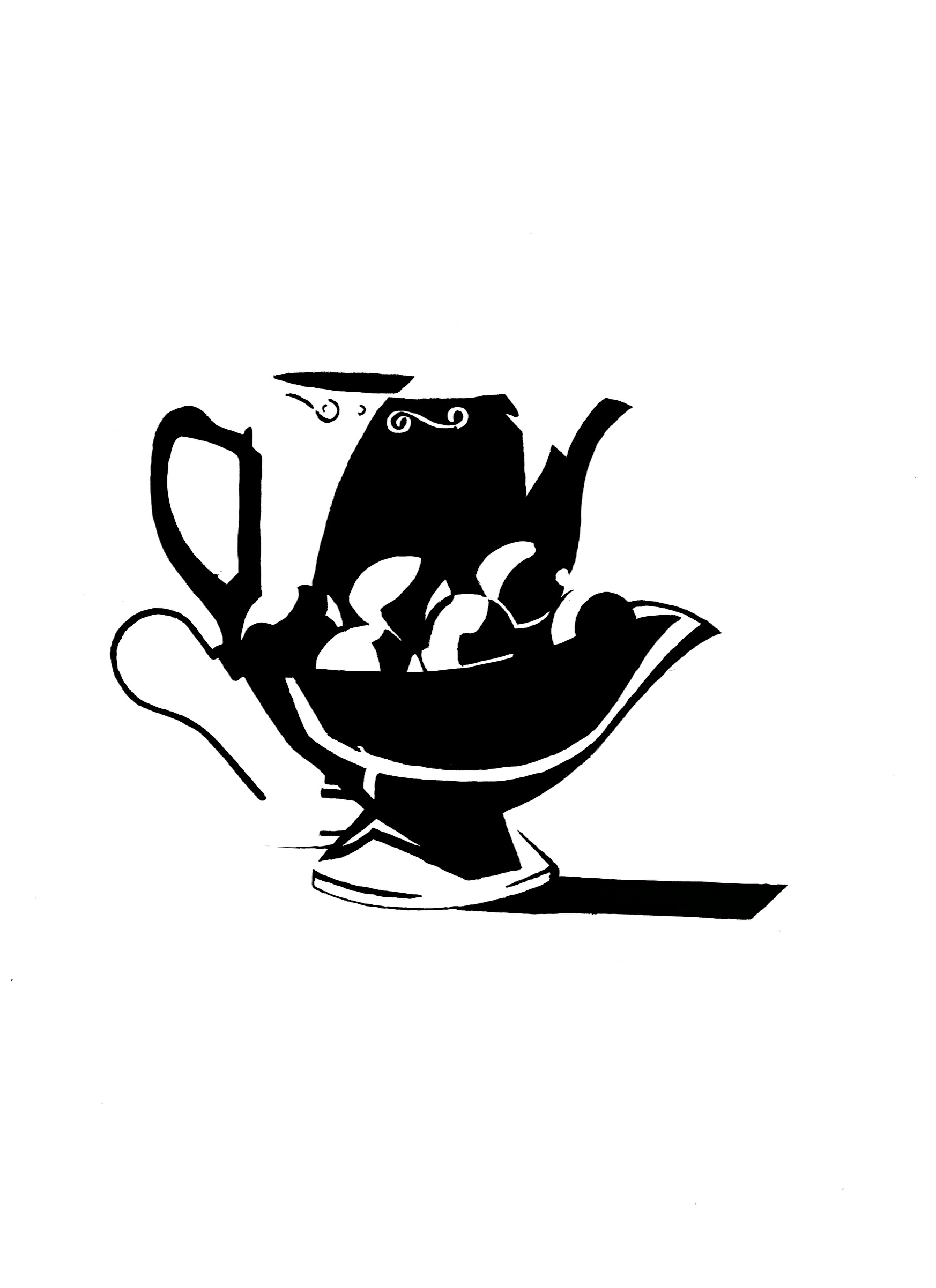 Drawing I, students create two-part value reduction compositions using India ink on illustration board.
